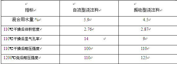 紅柱石自流與同材質(zhì)振動(dòng)澆注料的物理性能